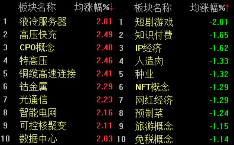 板块方面,电力股受政策利好刺激高开高走,豫能控股、南网能源、闽东电力、华银电力等涨幅较大,CPO(光模块)概念再度走强,天孚通信、炬光科技、致尚科技等多股涨幅在10%左右。